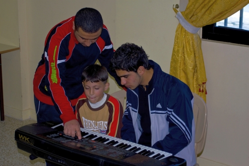 As we know, general music education requires instruments, song- and music traditions, localities and continuity in teaching. How is it possible to maintain such an activity from week to week? All the support for this project is channelled through Beit Atfal Assumoud, a religious and politically neutral organization that works among children with a difficult social situation. Throughout the years, the Norwegian participants have brought a lot of instruments from Norway. Today we find in the orchestra three synthesizers, microphones and sound systems, electric guitars, violins, guitars, saxophones, Orff-instruments, drum-sets, hand drums, accordion, melodicas. Of course, this blend of instruments creates a special challenge to any musical arrangements made for common performance.